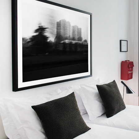 As amplas janelas por onde se esbanja luz solar nos andares mais baixos, transformam-se em singelos recortes