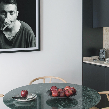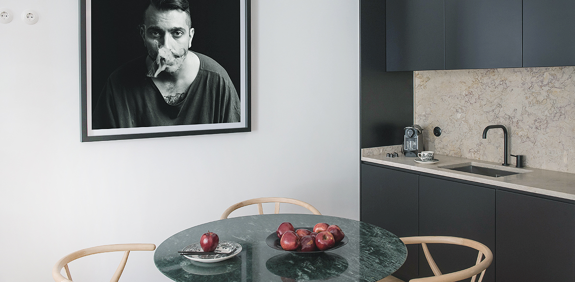 Mesa de jantar para 4 pessoas, com acesso a varanda exterior. Termoacumulador. Insonorização para o exterior.