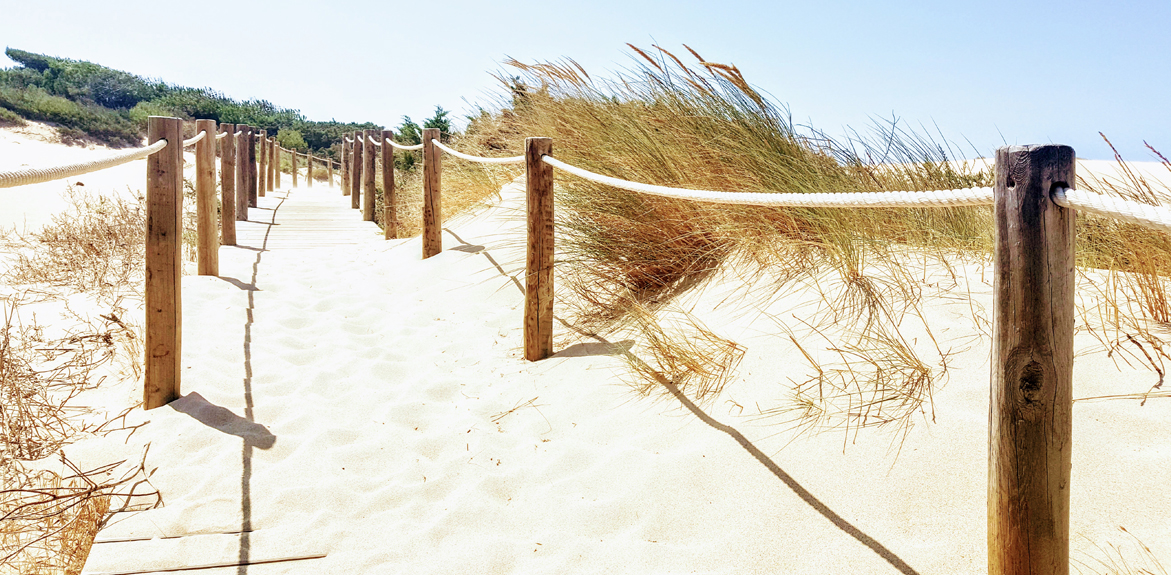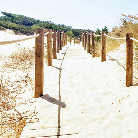sobre as dunas, permitem a sua preservação. Durante a sua caminhada para a praia desfrute da vista da abundante vegetação. |